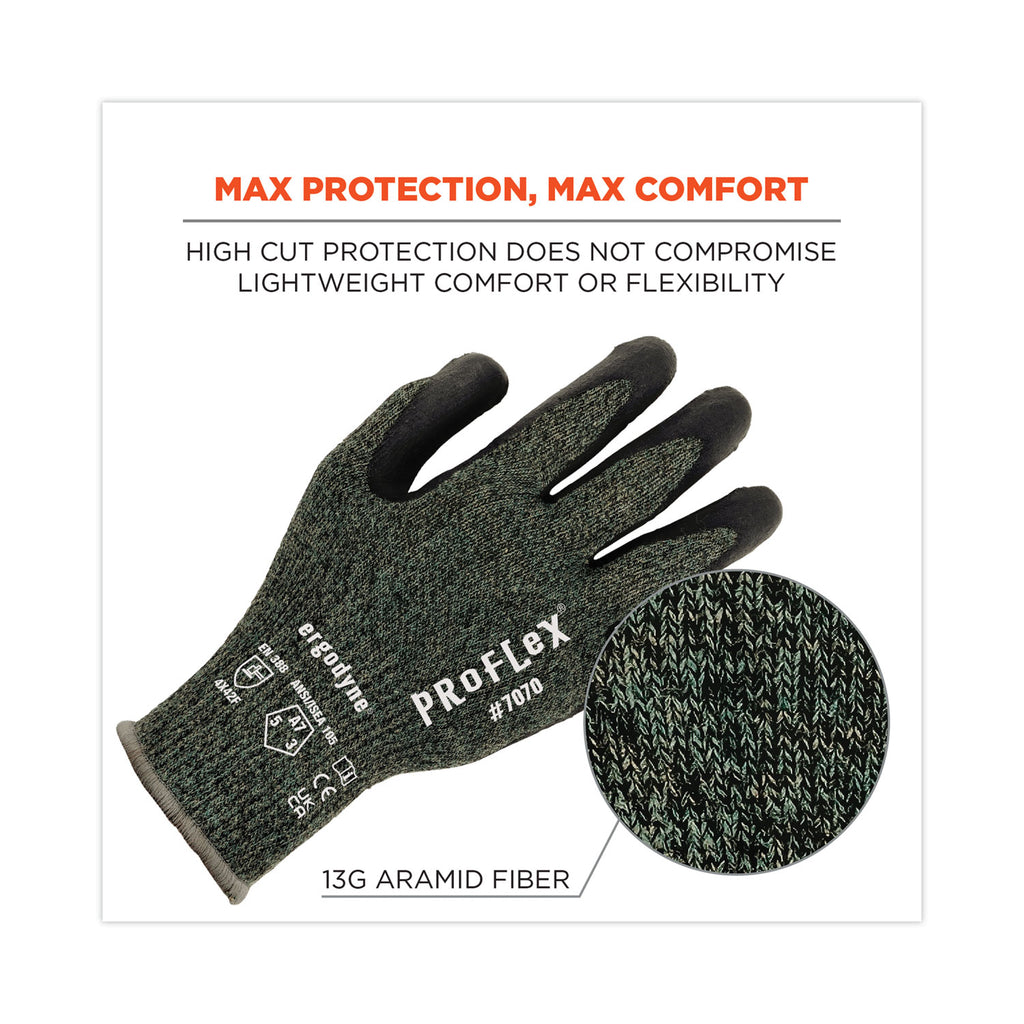 These nitrile coated cut-resistant gloves are made with heavy-duty aramid fiber for heat handling and ANSI A7 cut resistance, plus durable sandy nitrile coated palms for high strength grip and enhanced dexterity. The form-fitting 13-gauge aramid fiber knit protects hands from heat and cuts without compromising flexibility or comfort. The snug knit cuffs are longer than most on the market, a feature that enhances fit and extends protection while keeping dirt and debris out. These safety work gloves are tested to EN407 Level 1 contact heat resistance for safety when handling high temperature materials. A measure of how well the glove will insulate hands from heat, Level 1 contact heat resistance indicates the glove can withstand temperatures up to 100° C/212° F for up to 15 seconds.