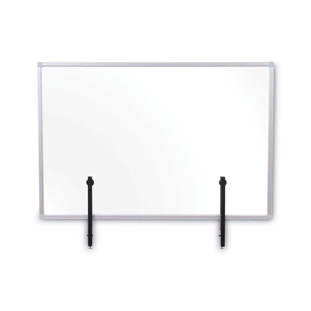 Due to the COVID-19 pandemic, social distancing and personal protection have become the new norm in order to stay safe. MasterVision introduces to you the Protector Series, designed specifically to protect you in public spaces. Transparent divider allows users to stay protected while maintaining visibility. Ideal product for desks and tables across multiple areas such as offices, restaurants and other public settings. Features an aluminum frame and a pair of robust clamps which attach to the tabletop or desktop.