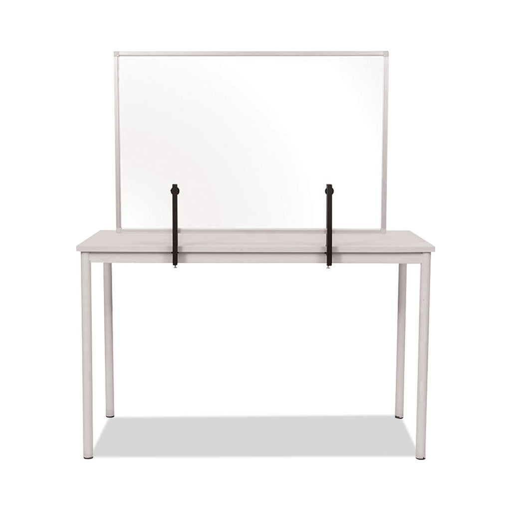 Due to the COVID-19 pandemic, social distancing and personal protection have become the new norm in order to stay safe. MasterVision introduces to you the Protector Series, designed specifically to protect you in public spaces. Transparent divider allows users to stay protected while maintaining visibility. Ideal product for desks and tables across multiple areas such as offices, restaurants and other public settings. Features an aluminum frame and a pair of robust clamps which attach to the tabletop or desktop.