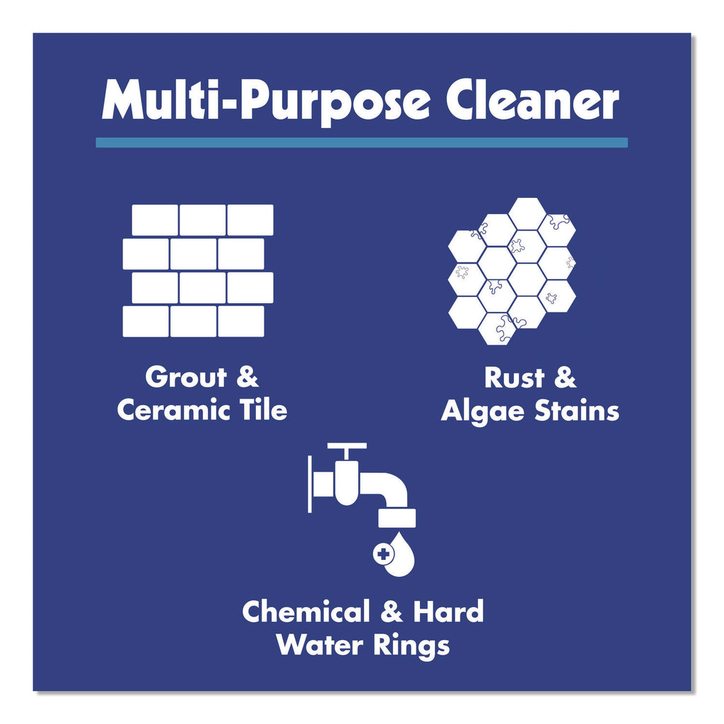 - Ideal for removing pool rings from chemical and hard water scale and rust and algae stains.