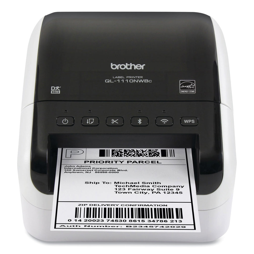 This high-speed label printer is engineered with flexible connectivity options via Bluetooth® wireless technology, Ethernet and Wireless (802.11b/g/n) interfaces. This business-quality label printer lets you create cost-effective up to 4 wide paper labels for packages, envelopes, postage and more. The automatic crop function lets on-line sellers easily print product and other barcode labels from A4/Letter size label sheet templates (Windows® only). It delivers fast printing up to 69 standard address labels per minute with black text at 300 dpi. Auto cutter allows for printing one or multiple labels at a time helping eliminate wasted label sheets.