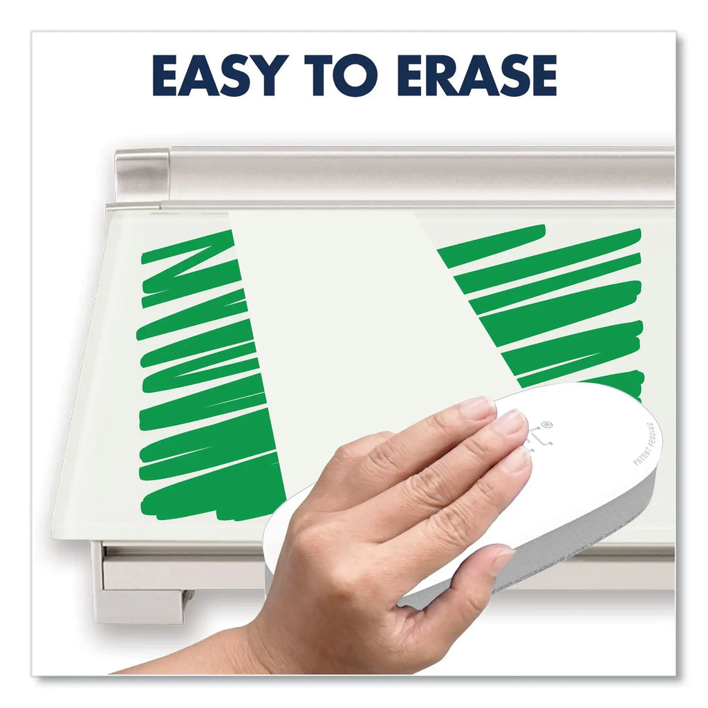 Optimized for use on contemporary glass surface boards. Delivers bold color with best in class liquid ink delivery system. Low odor, easy to erase markers are great for any environment. Bullet tip creates thick, broad lines for messages that are clear and easy to read both up close and from a distance. Markers feature a see-through ink gauge to clearly see how much ink remains.