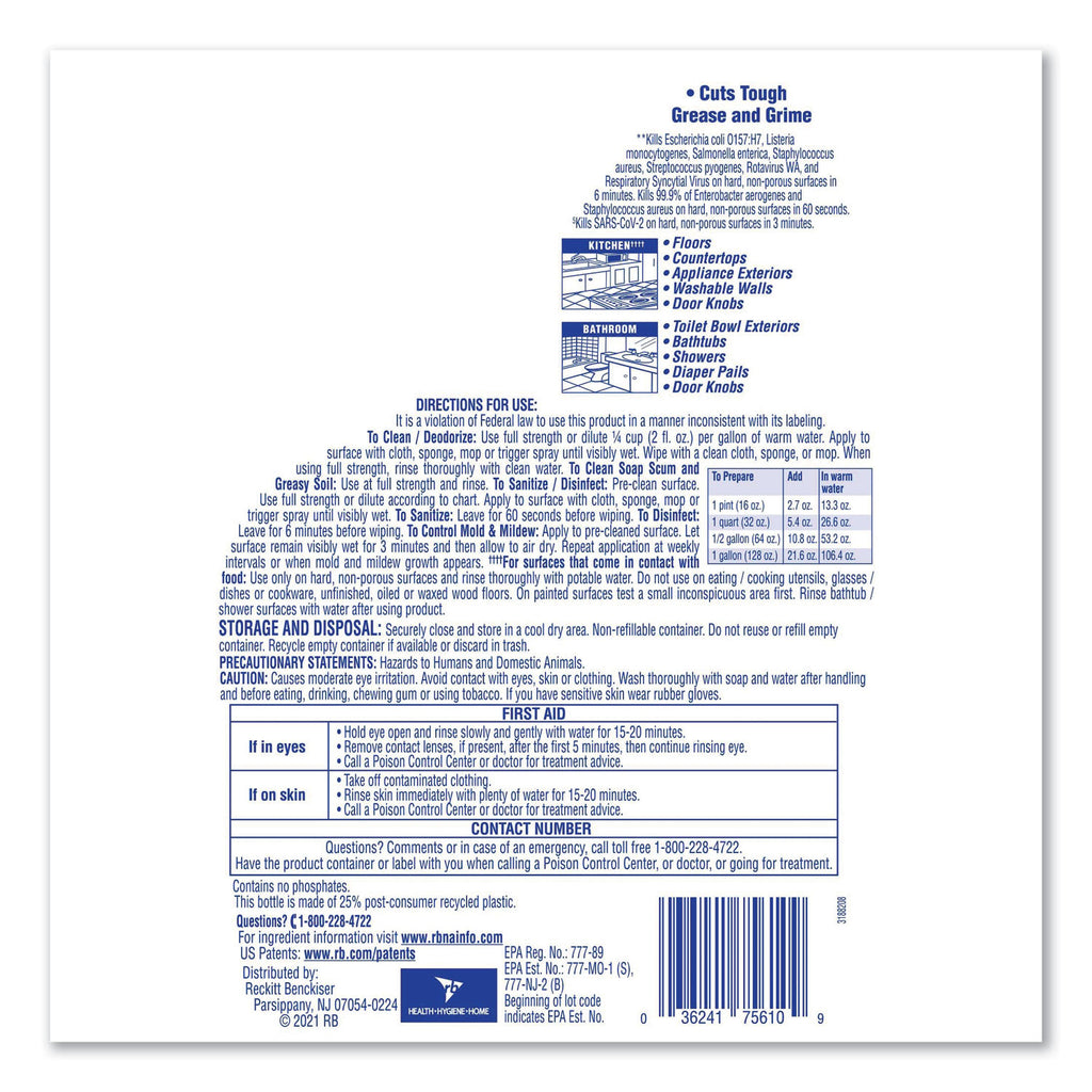 - Gain versatility and value from the pourable multi-surface cleaner that disinfects at full strength (ready-to-use) or when diluted.