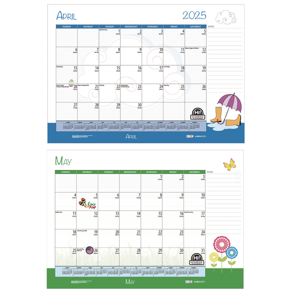 - Each month features a different lively design depicting the seasons and holidays for that month.