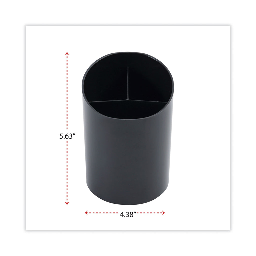 Declutter your workspace by keeping your writing essentials organized and within reach. Ditch the drawer and put your writing utensils where you need them. The compact and functional desk organizer features three tiered compartments for easy access to pens, pencils, markers, highlighters, and scissors. The convenient organizer leaves a small footprint yet holds a lot of writing essentials. Constructed from sturdy plastic for lasting use.