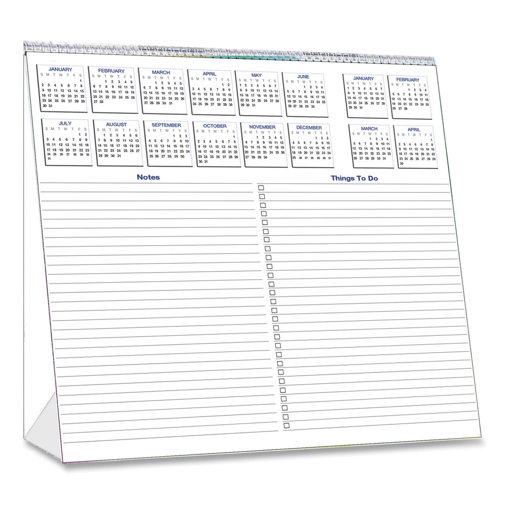 - 12-month reference calendar plus four future months on the back of each page.