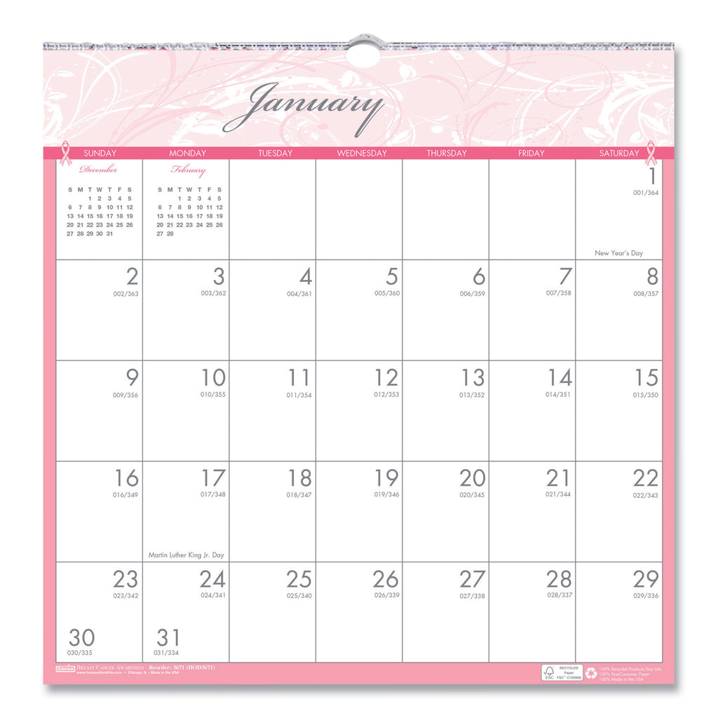 - Heighten awareness of breast cancer with this pink and gray calendar.