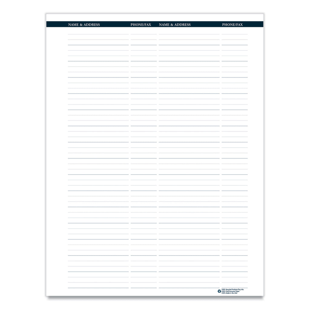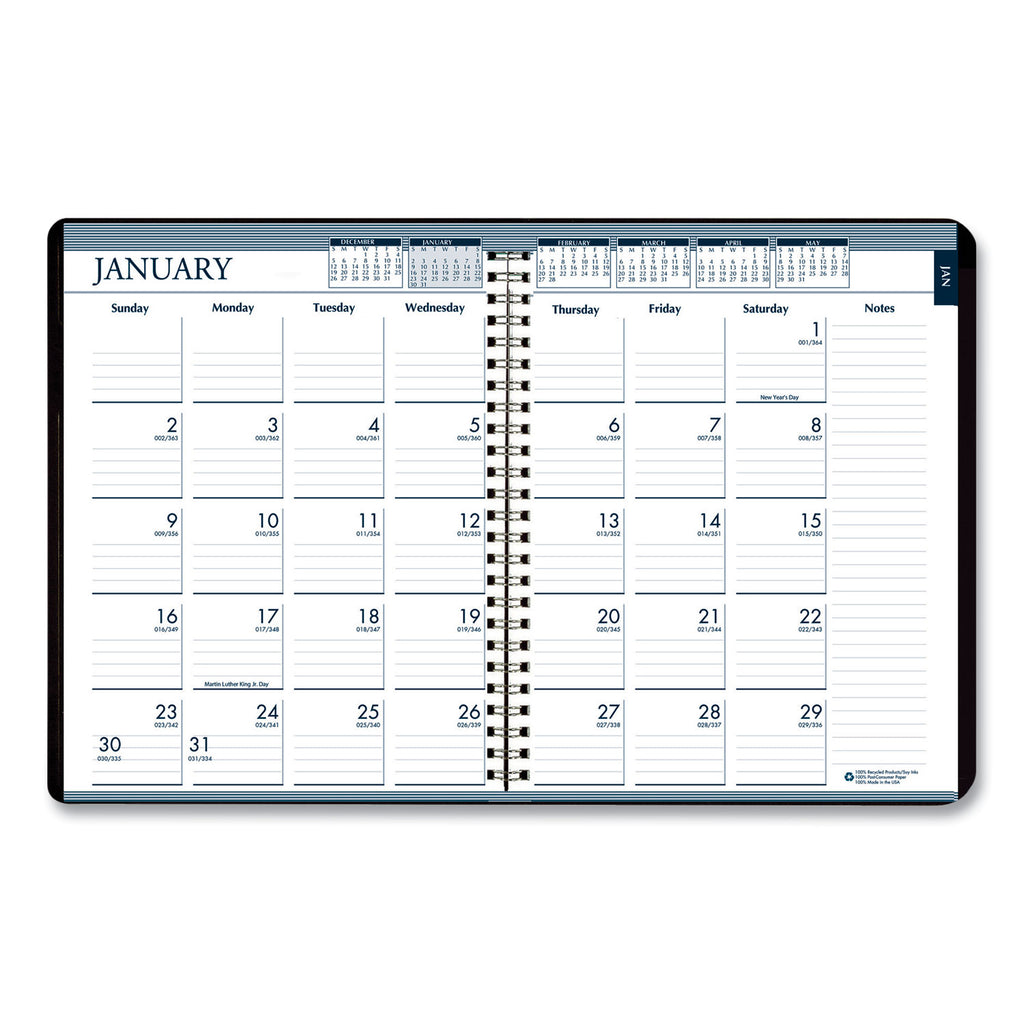 Each monthly two-page spread features a printed indicator for easy reference. The weekly pages feature one-week view per two-page spread with hourly appointments from 8:00 a.m. until 9:00 p.m., Monday to Sunday. A 2-sided pocket for storing important papers is included. Printed on recycled paper with soy inks.