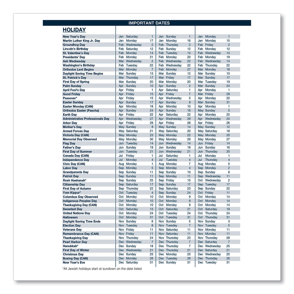 | Separate Sections | Important Dates/Holidays; Notes/Memos; Time Zone Map; Three-Year Reference Calendar |