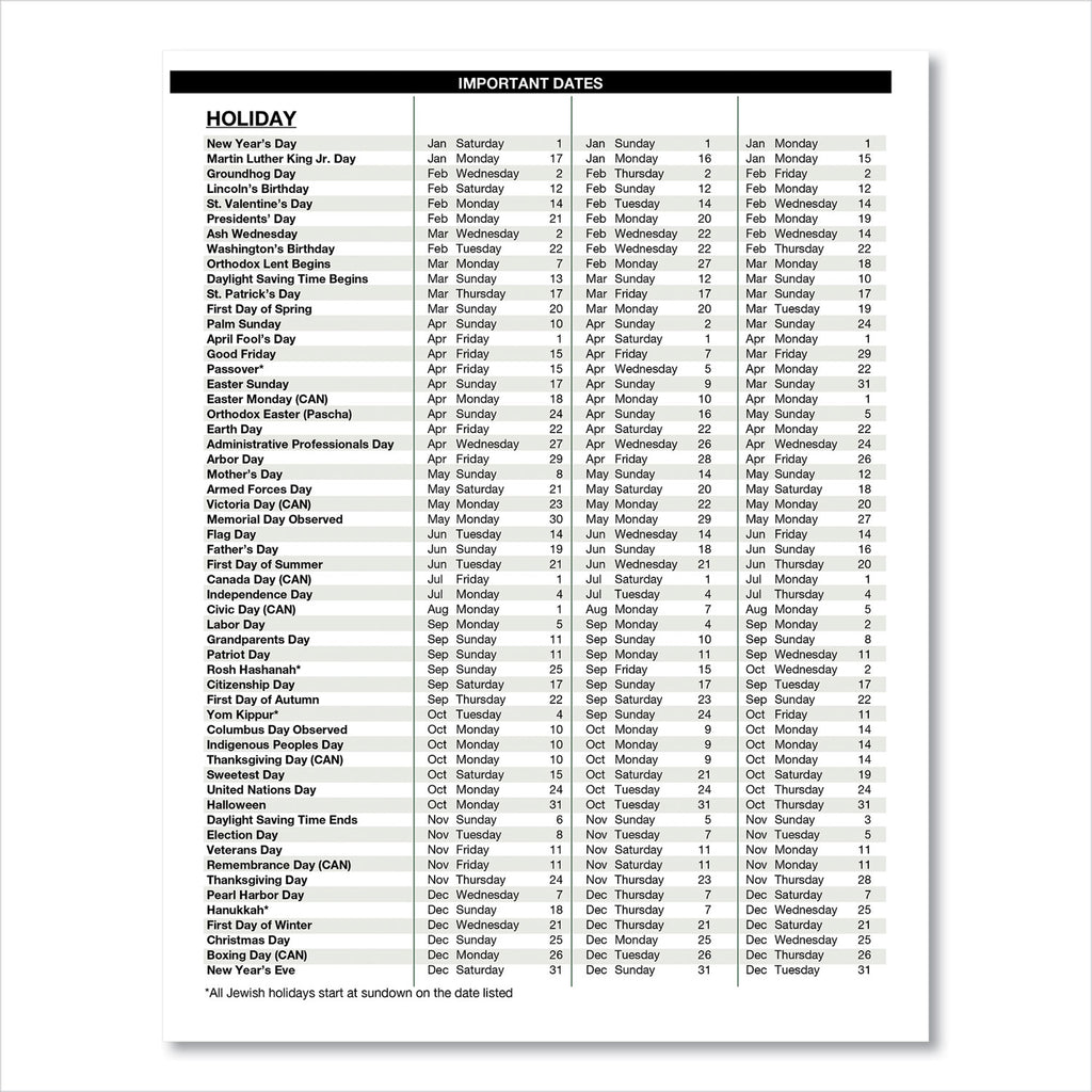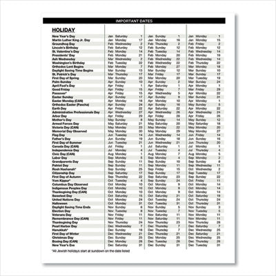 | Separate Sections | Telephone/Address Directory; Three-Year Holiday List; Three-Year Reference Calendar |