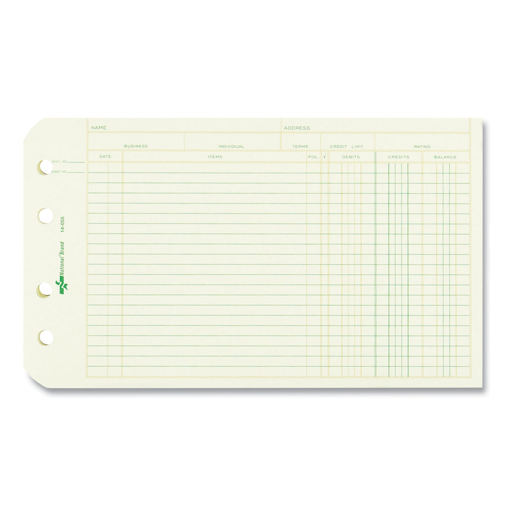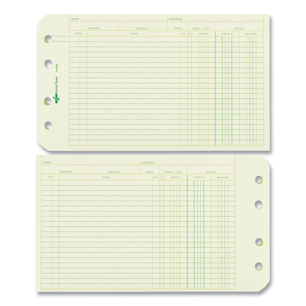 Forms are set up for accounts payable and accounts receivable with debit, credit and balance columns. Easy-to-use sheets make performing accounting tasks easier and less time consuming. Green paper color is easy on the eyes. For use with National® 63453 Four-Ring Ledger Binder (sold separately).