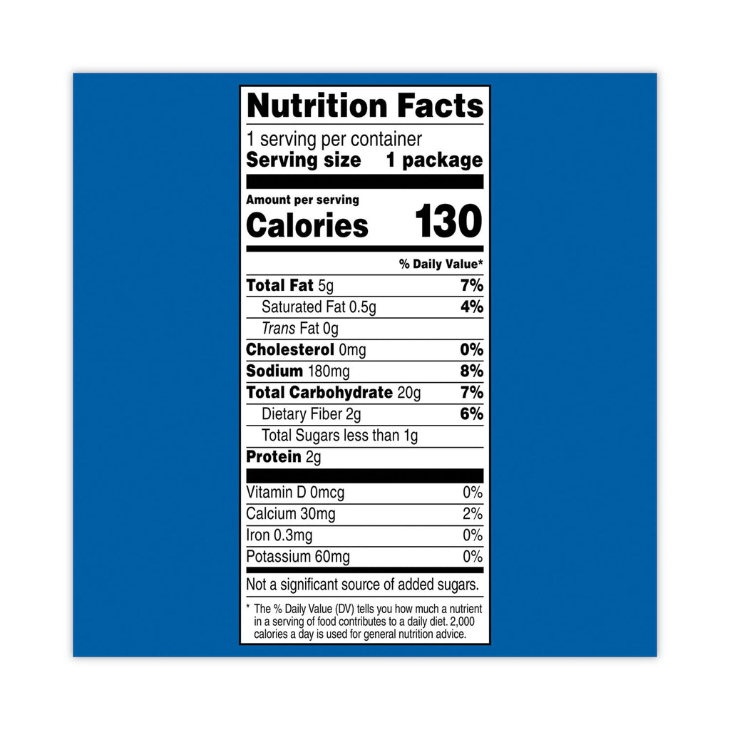 Get all of the delicious Doritos flavor you know and love with less of the fat! They have 25% less fat than regular Doritos, but still pack in all of the flavor. With mouth-watering rich Cool Ranch flavor, these tortilla chips will be a favorite around the office or at your next event or party. Each bag is only 140 calories.