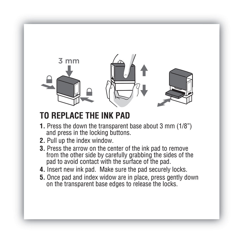 Changing ink pads is easy with this snap in, snap out cartridge style. Delivers up to 5,000 impressions.