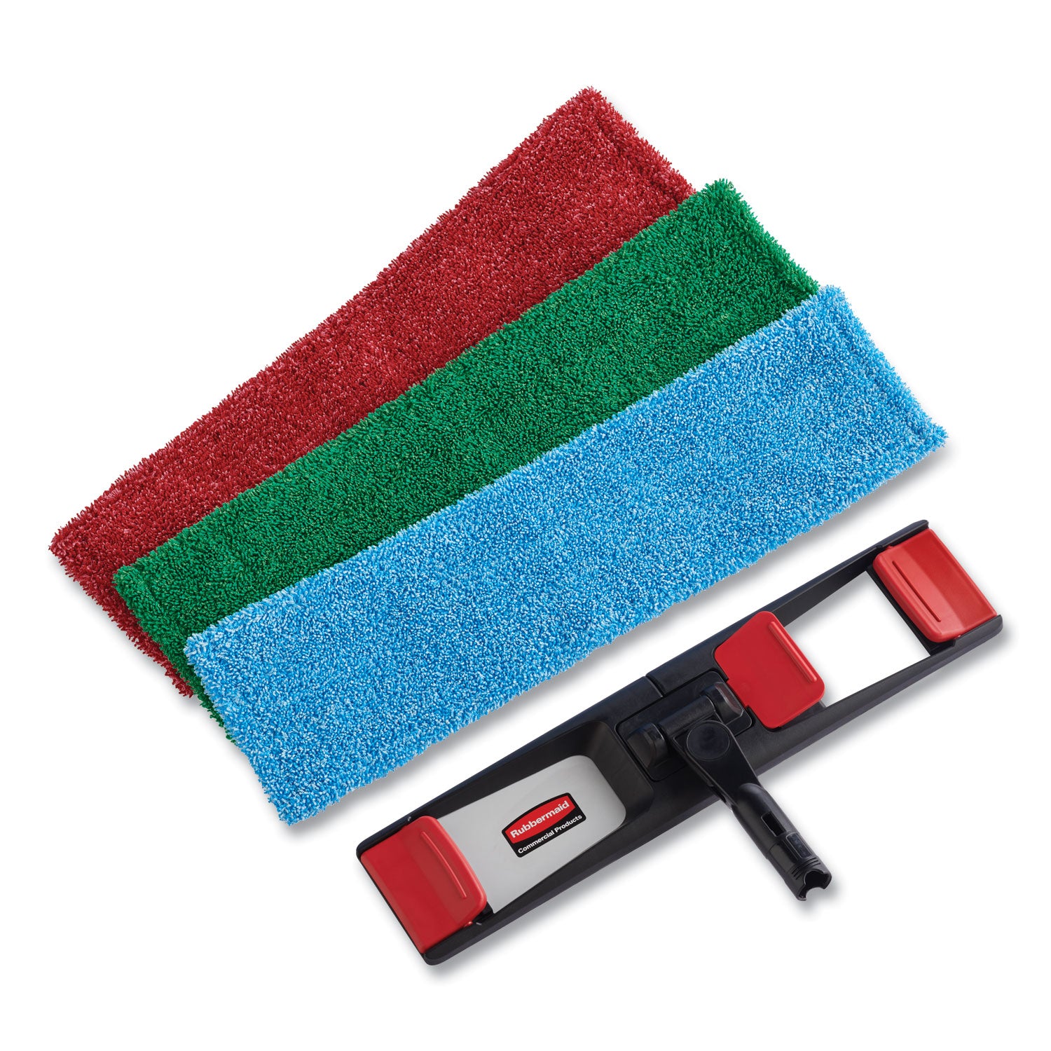 - Connects to the Adaptable Flat Mop Frame via tabs or pockets for two styles of microfiber mopping in large spaces.