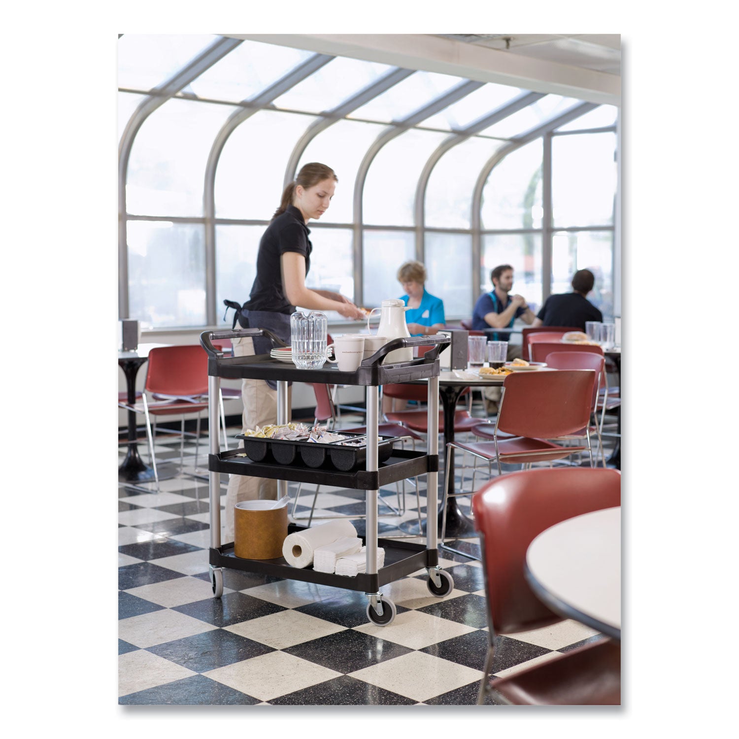 Versatile; for audio/video, filing, food service. Shelves feature 1/4" lip on three sides and one flat side for easy loading. Brushed aluminum uprights, dual molded handles.