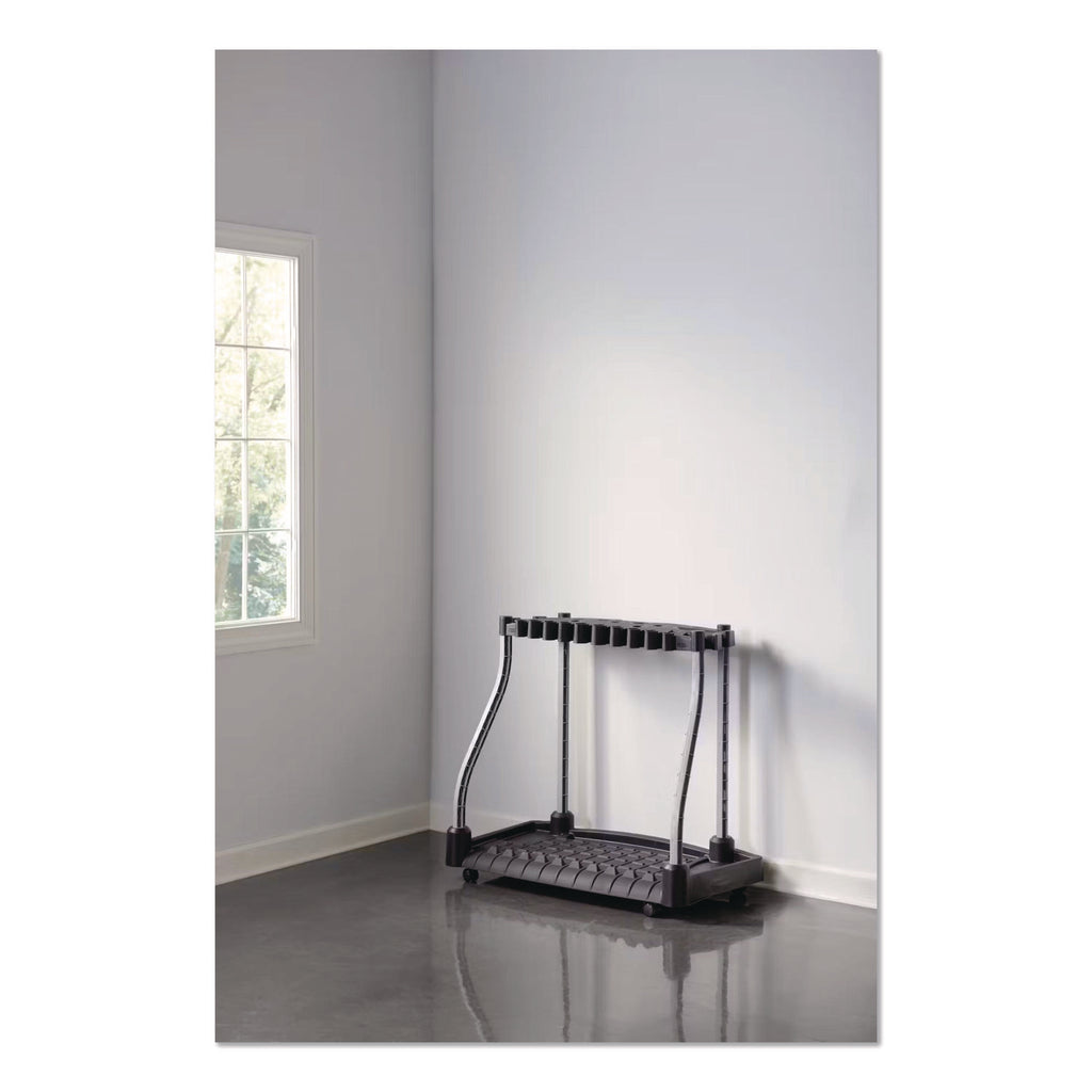 The Rubbermaid® FastTrack Storage System is the fast way to organize your garage. Equipped with rails, hooks and shelves, it's an easy storage solution that can grow as life changes. This tool tower maximizes available space while still being slim enough to not take up a lot of space. It holds up to 40 tools. It has a molded-in weed trimmer and electric cord holder. Casters make for simple mobility. It is easy to assemble and will not rust, dent, rot or peel.