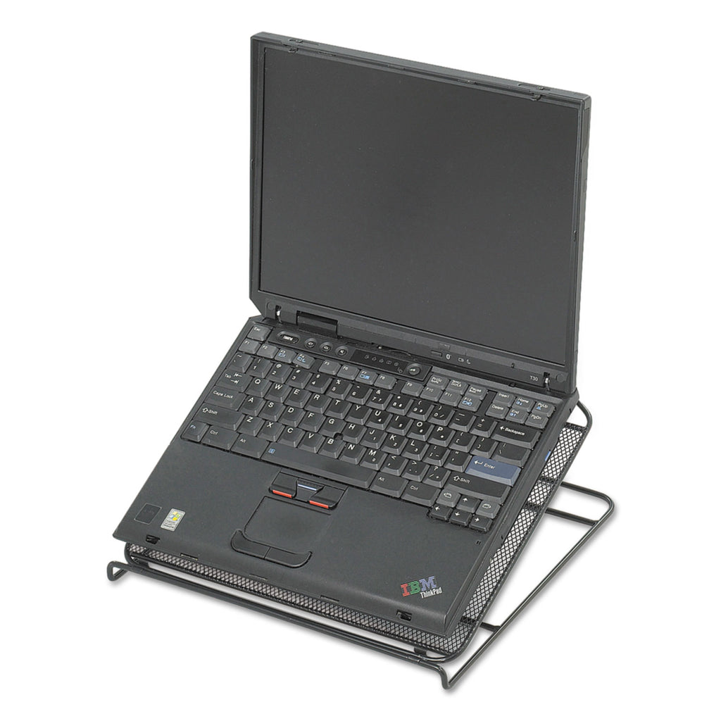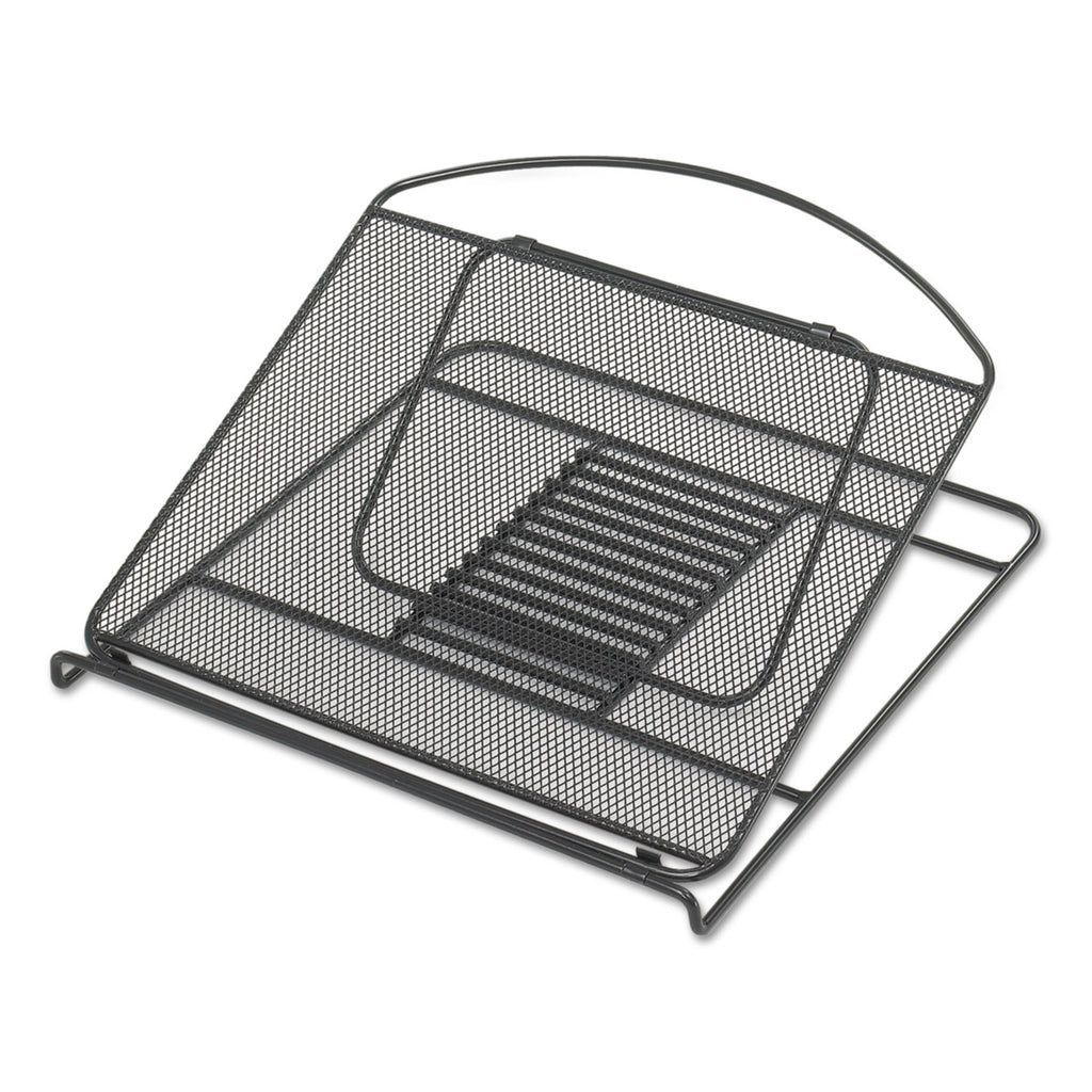 Adjustable stand positions laptop at personalized viewing levels, reducing glare and eye fatigue. Unique design allows unit to fold flat for portability. Durable steel mesh construction provides strength and stability while blending into any workspace décor.
