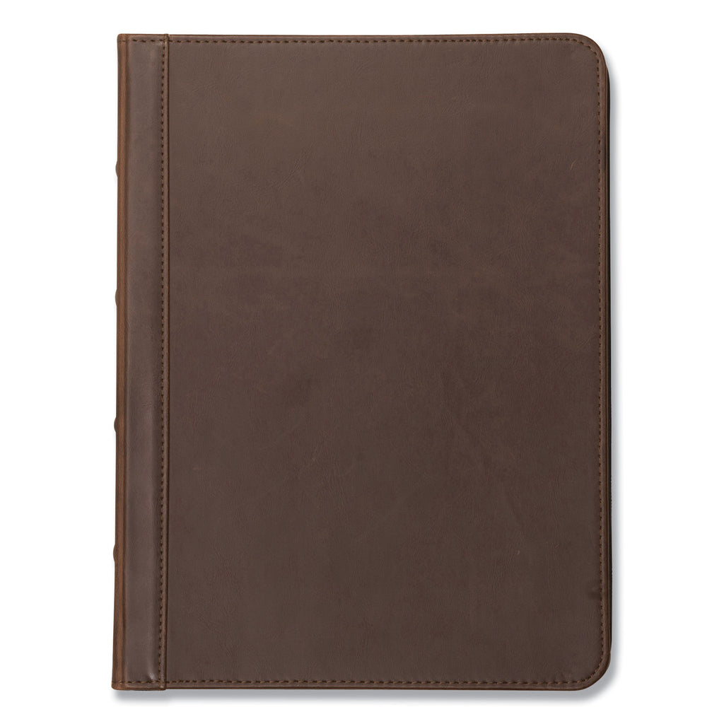 This zipper portfolio offers an elegant look and feel of aged leather with the stunning book like spine. It combines simplicity and sophistication with a hint of unique antique appeal. This pad holder is sewn on the edges for a sleek, smart look along with durability.
