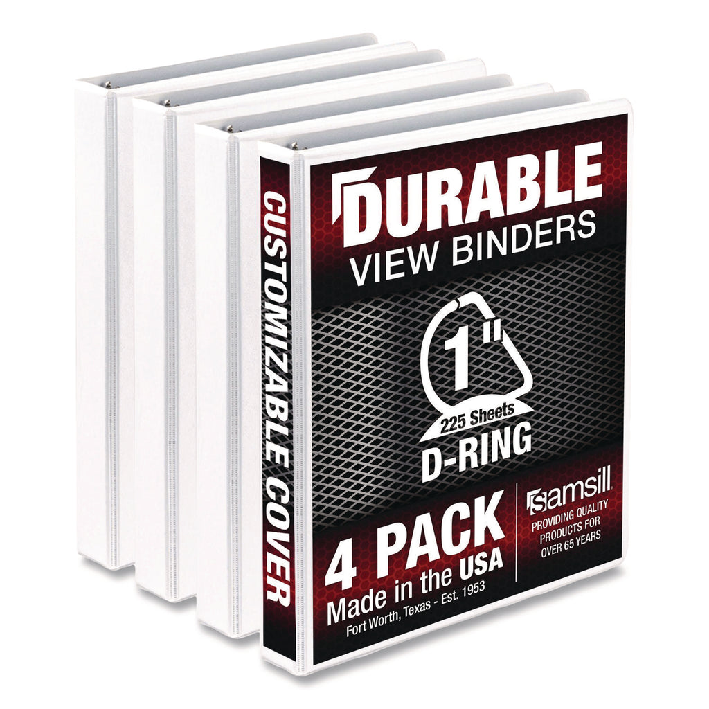 Samsill® Durable D-Ring View Binders, 3 Rings, 1" Capacity, 11.5" x 8.5", White, 4/Pack