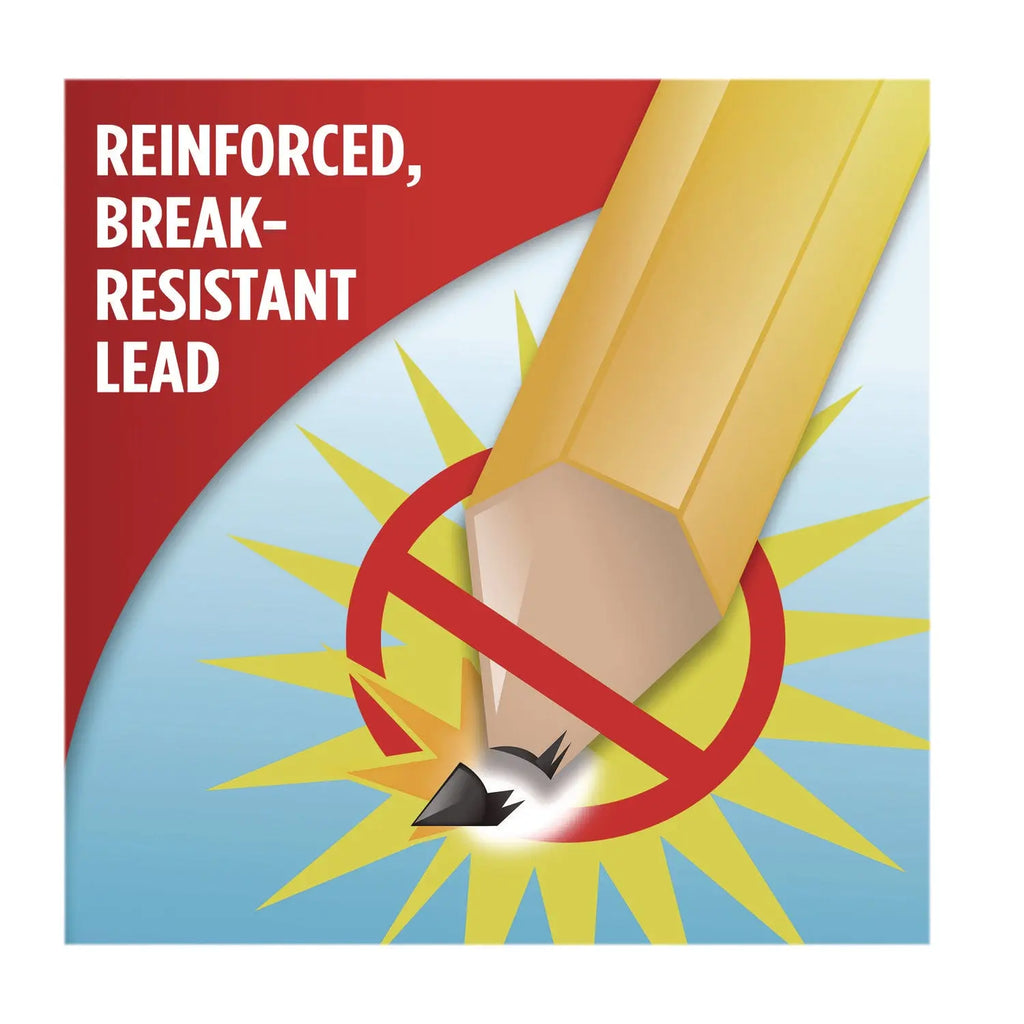 These woodcase pencils have reinforced, break-resistant lead when writing, so they need less sharpening and last longer. Pencils feature 100% latex-free erasers.