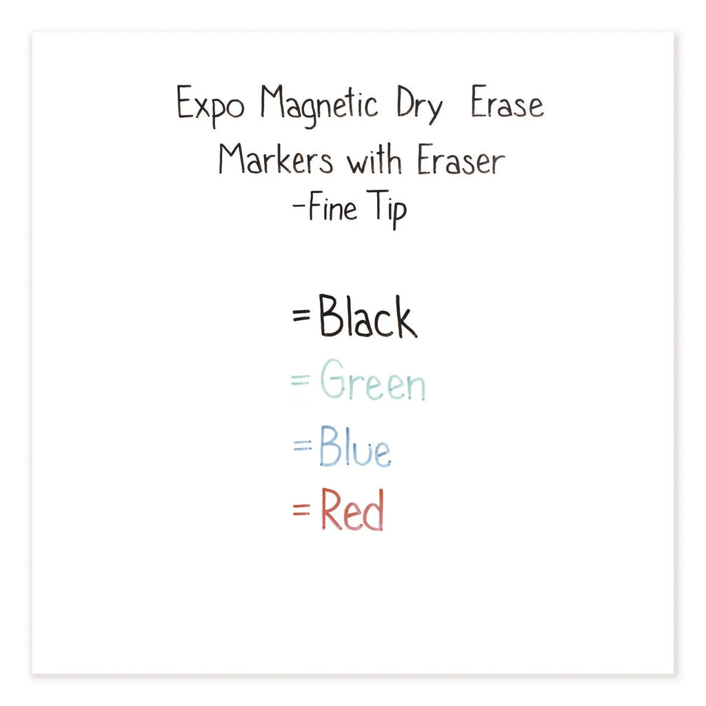 Magnetic dry erase markers have an integrated magnet for convenient storage on metal surfaces. A handy eraser on the cap makes it easy to eliminate mistakes. Bold, vibrant colors make it easy to make a statement.