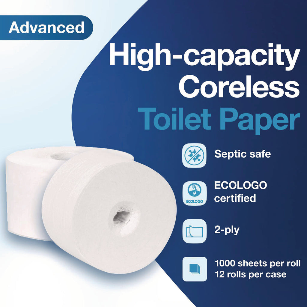 - Refill less often, reduce paper shortages and save storage space as this compact coreless toilet paper has two times more bath tissue and uses half the storage space compared to conventional rolls.