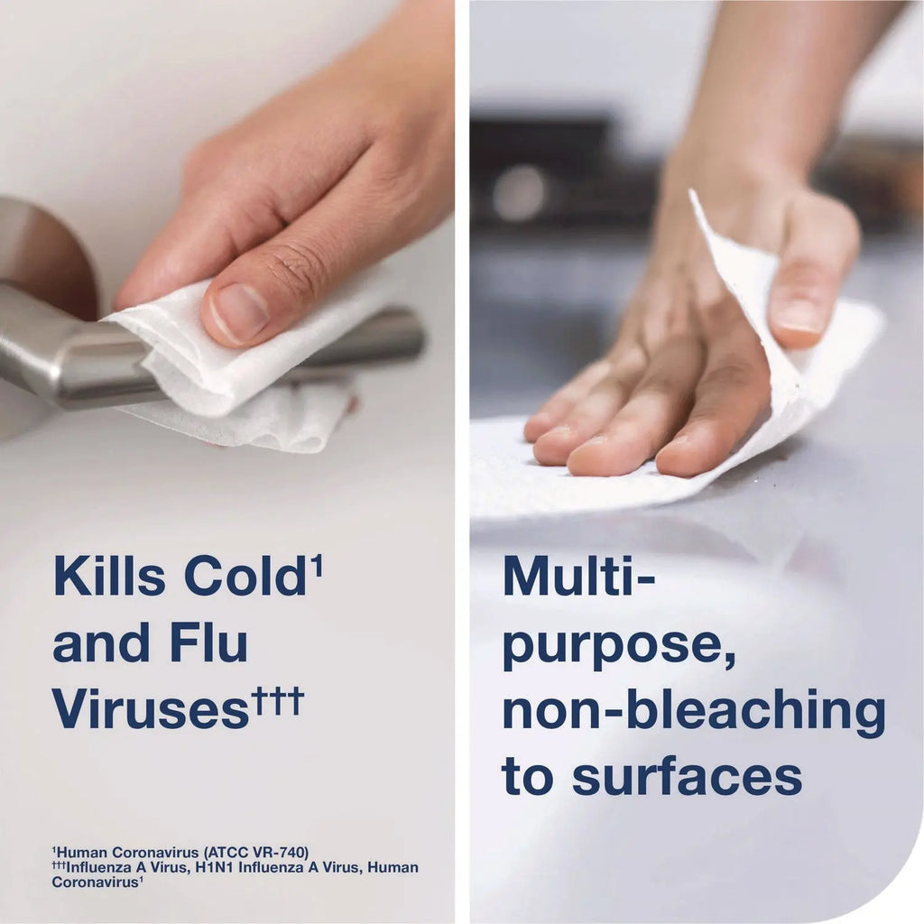 Simplify surface hygiene tasks with these multipurpose disinfecting and cleaning wipes. The Everwipe by Tork disinfectant wipes kill 99.9% of germs, and kill cold1 and flu viruses. These disposable disinfecting wipes come in a jumbo roll format that is compatible with Everwipe by Tork W12 dispensers, which are designed to make wet wipes readily accessible to your staff and/or customers