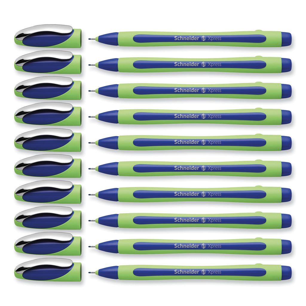 Schneider® Xpress Fineliner Porous Point Pen, Stick, Medium 0.8 Mm, Blue Ink, Blue/green Barrel, 10/box