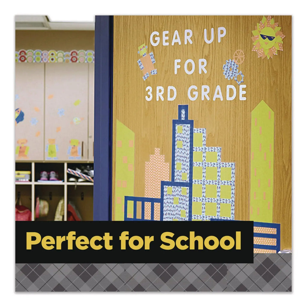 Decorate and personalize your projects. Easy-to-tear, paper finish. Write on it with pen, pencil or marker. Adhesive holds securely. Works great for mounting and accenting assignments.