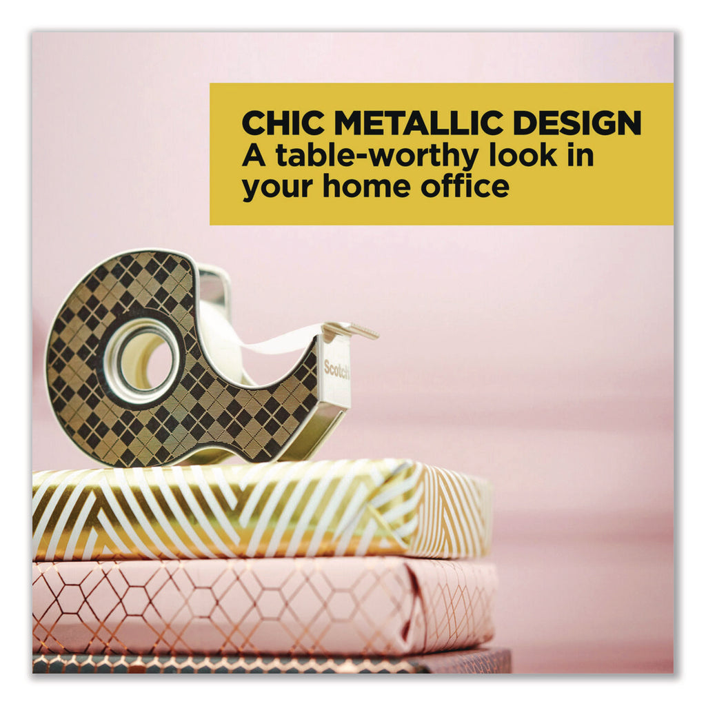 Start using less plastic by switching to this sleek and durable stainless steel refillable tape dispenser. With its chic plaid design, the metal dispenser is a stylish and lifelong addition to school, classroom, or office supplies. Scotch Brand has been trusted for nearly 100 years, constantly innovating to bring you the best adhesive tools to help you with any project. Buy this starter pack once - and help eliminate plastic dispensers from the landfill. The durable ergonomically designed metal dispenser replaces the plastic handheld dispenser you've used for years. The two included rolls of matte finish invisible tape help you get the job done right, the first time. To refill the ergonomically designed dispenser, use thumb and index finger to gently push walls of dispenser away from each other.