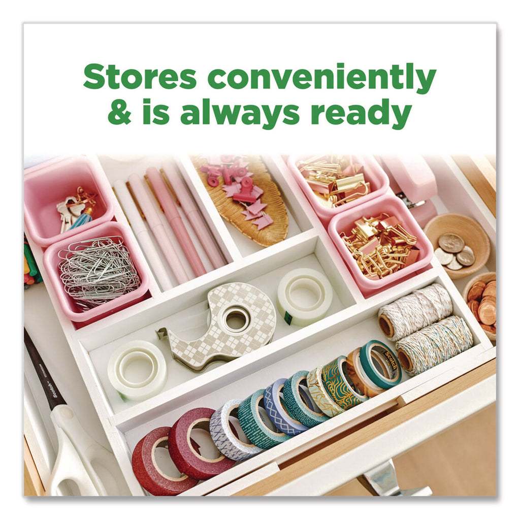 - Includes handheld tape dispenser, two refill rolls of invisible Scotch Magic Tape, and a tear-away bottom for easy refill storage.