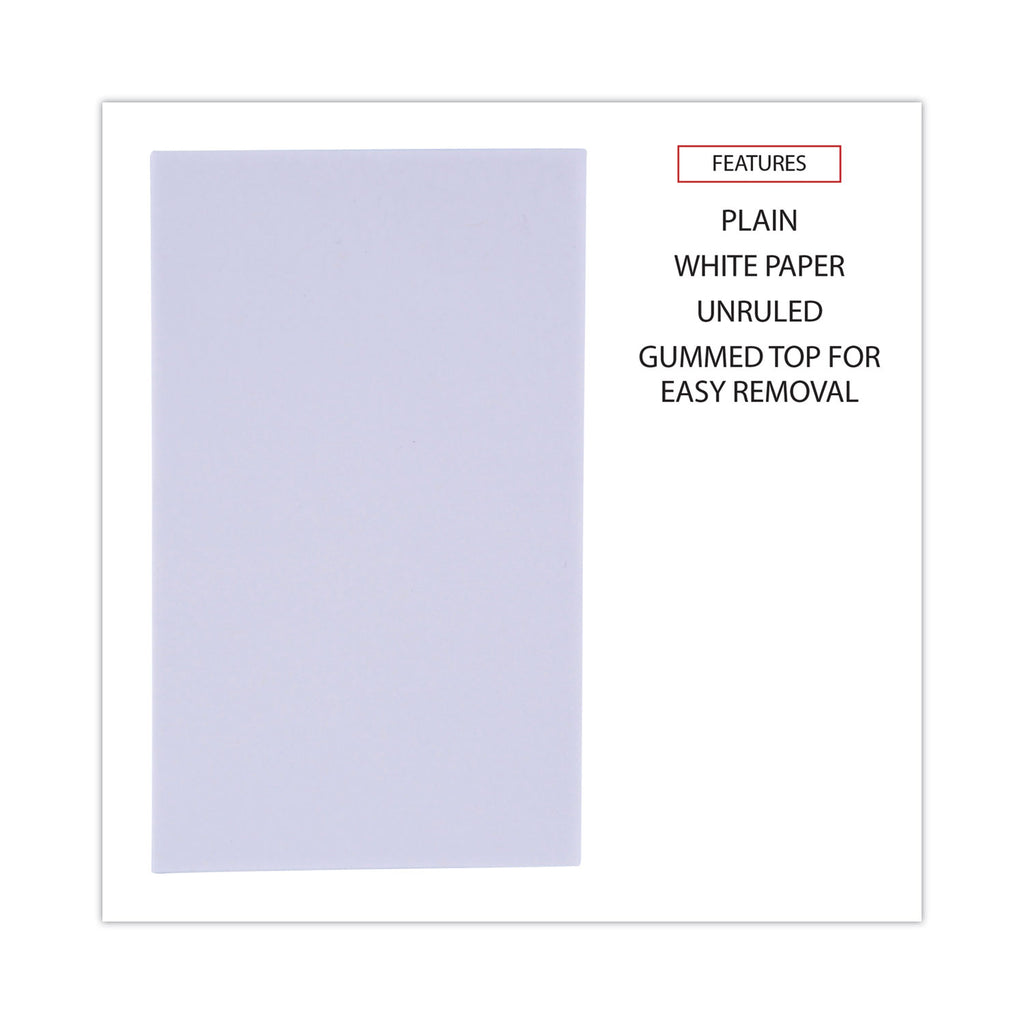 Plain, unruled, white paper pads with a gummed top and cardboard backing. The scratch pads are ideal for taking quick notes at home, the office, school, or on-the-go. Each sheet tears out cleanly and easily without leaving any residual paper tears or glue, even when torn from the center of the pad. Convenient size fits into a small bag or purse.
