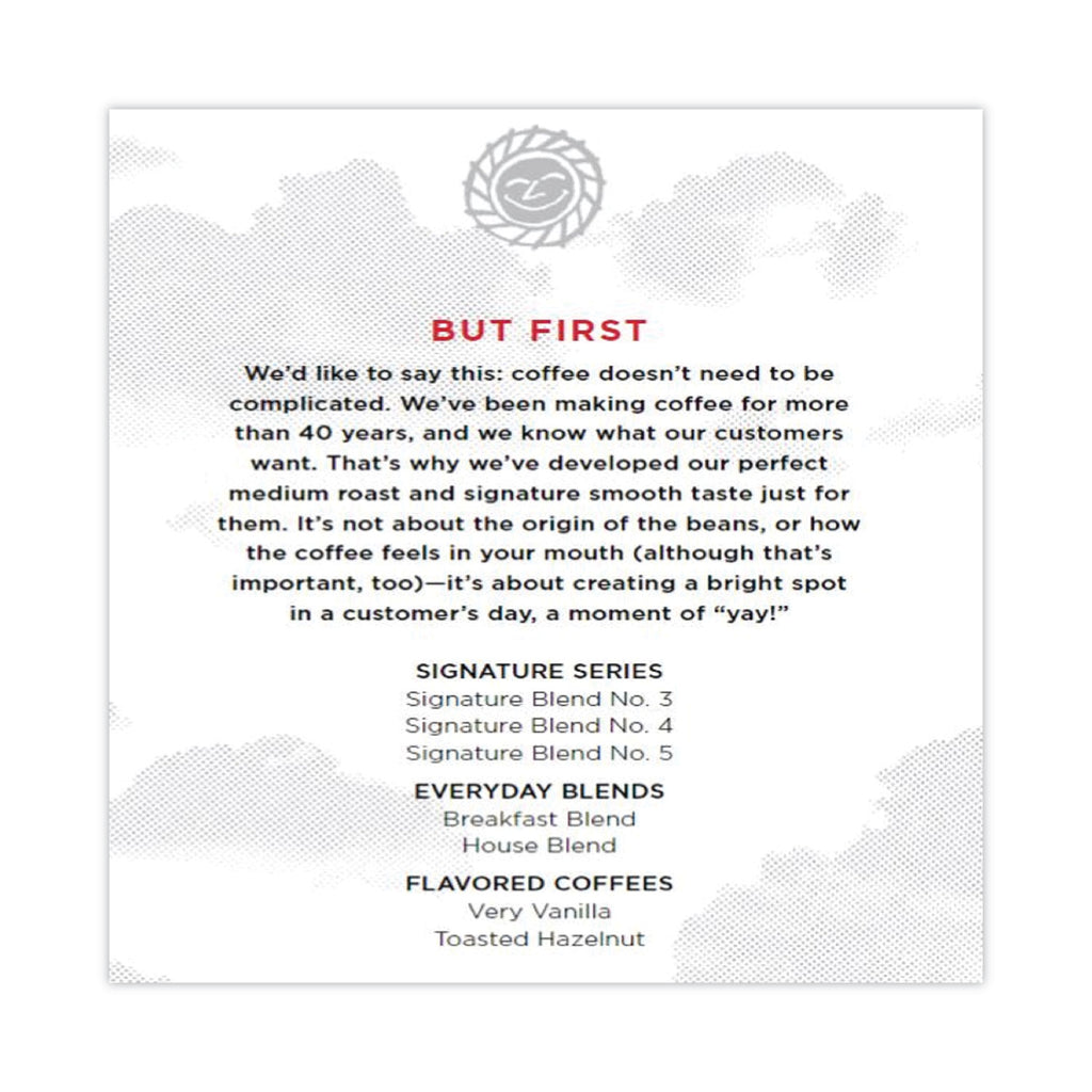 Enjoy a balanced, smooth and full-flavored coffee. This coffee offers medium acidity with nutty nuance and a clean finish. Goes great with buttery items that have a vanilla flavor.