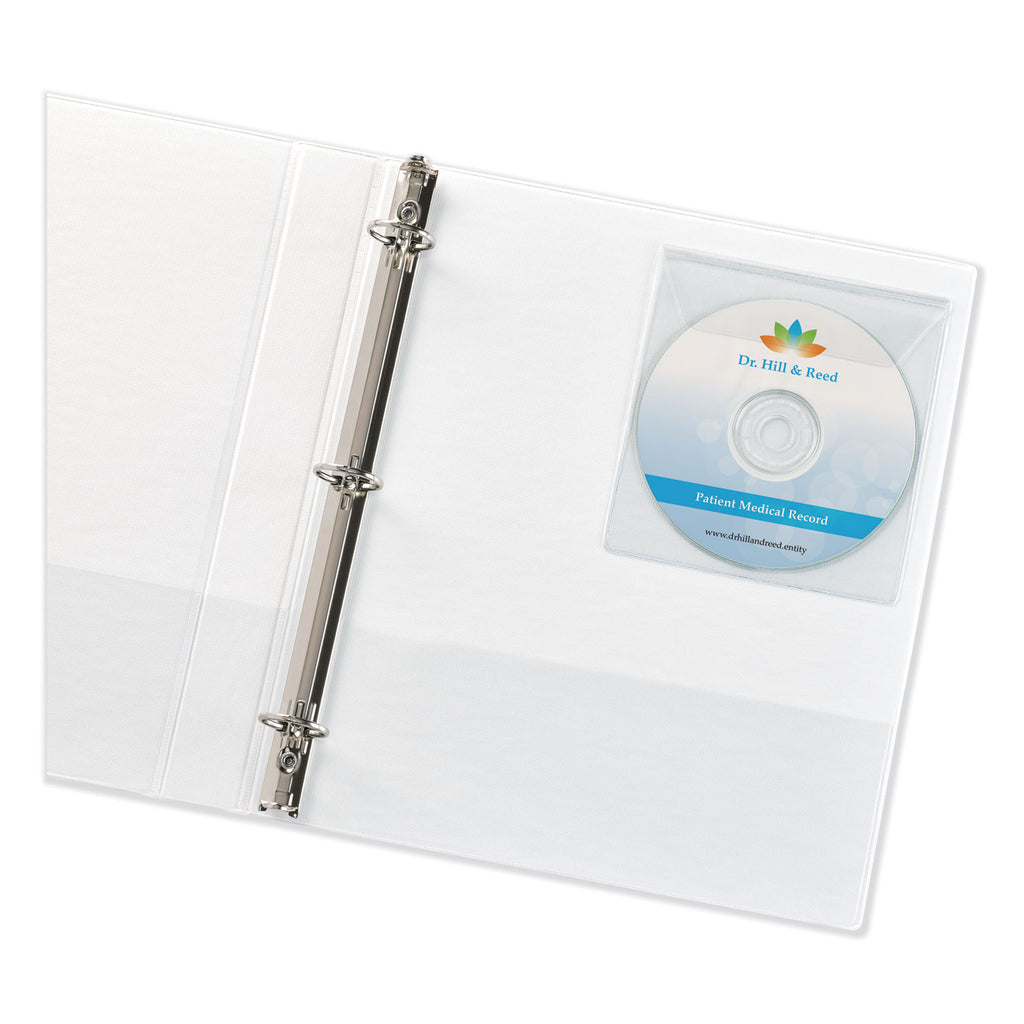 - Self-adhesive pockets easily attach your storage media to files, binders, presentations, and reports.
