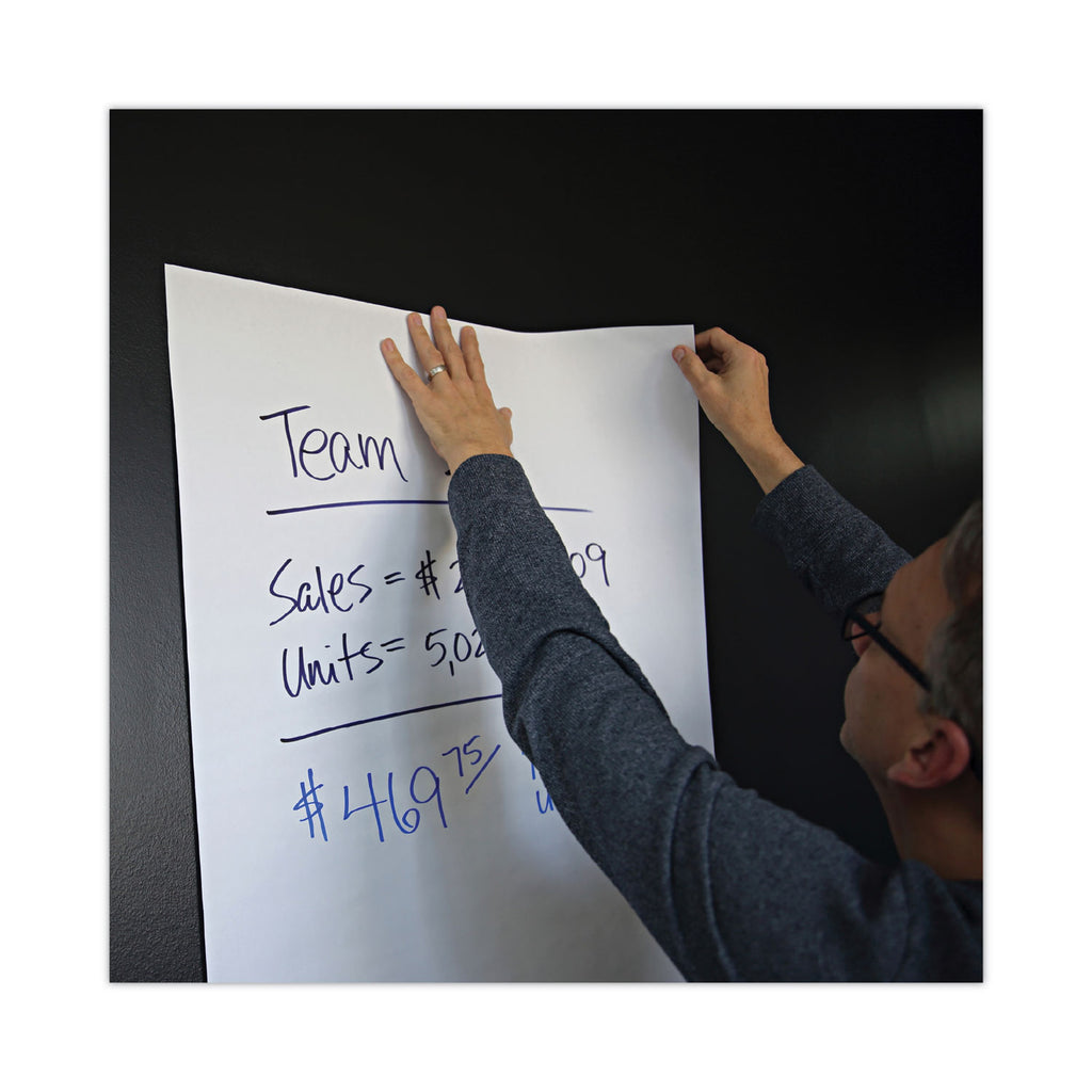 A high-quality, value-priced easel pad with no release liner. Features a slim design with convenient cut-outs for mounting on an easel. The self-sticking sheets adhere to most surfaces and leave no messy residue. 20-lb. bleed-resistant paper. Carrying handle for easy transport. Great for classrooms, conference rooms, meetings, and virtual learning. Easel sold separately.