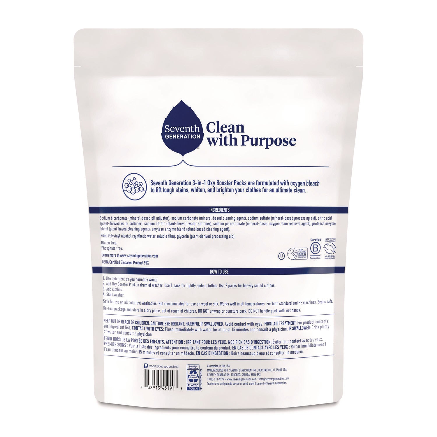 - One Oxy Booster pack per load used with Seventh Generation® laundry detergent keeps clothes looking great.