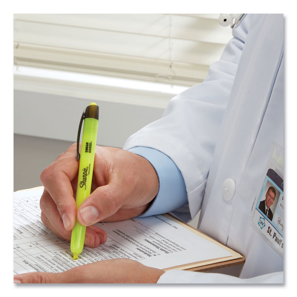 Sharpie® Retractable Highlighters, Fluorescent Yellow Ink, Chisel Tip, Yellow/black Barrel, Dozen
