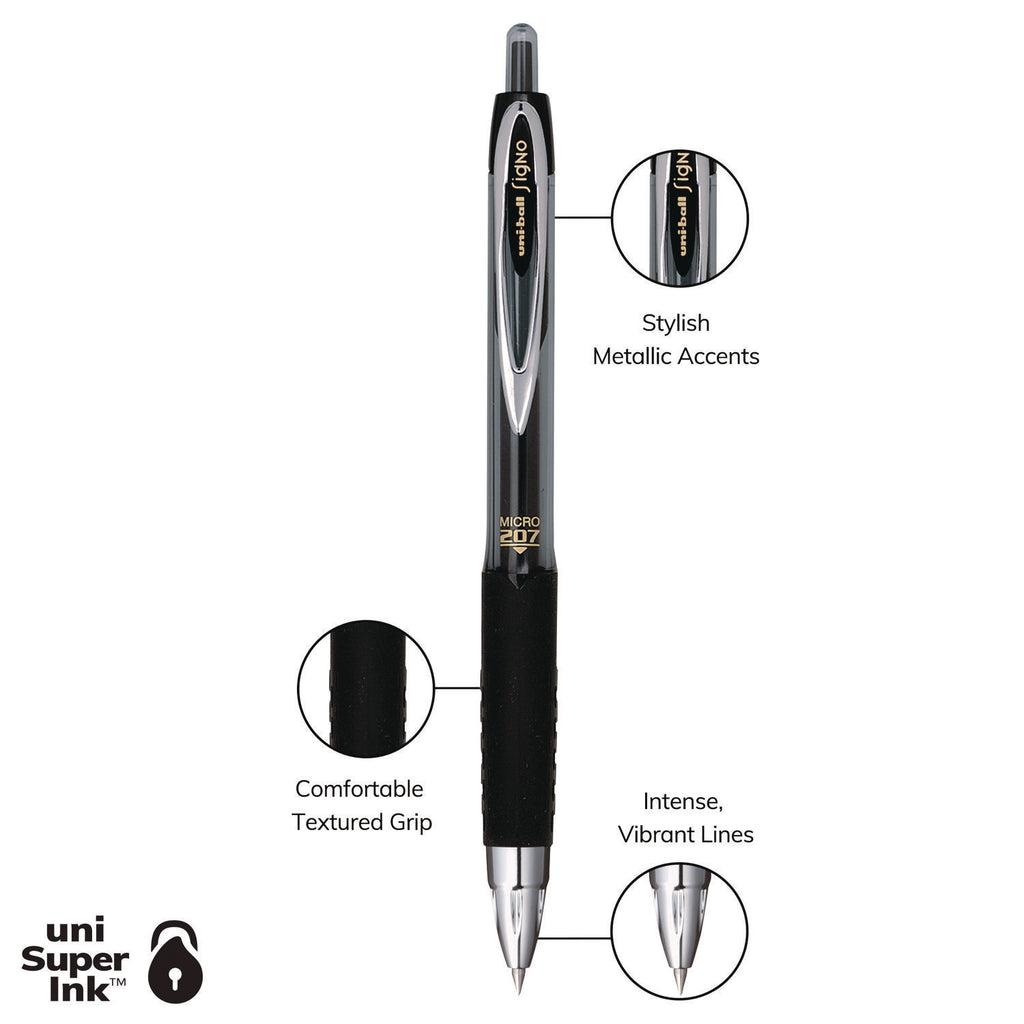 Stainless steel tip resists bending and breaking. Even-flowing, pigment-based gel ink delivers a smooth writing experience for intense, vibrant lines, ensuring that every mark is brilliantly communicated. Use these retractable gel pens for everyday writing tasks, check signing and all of your important signatures, trusting its quick-drying uni Super Ink.