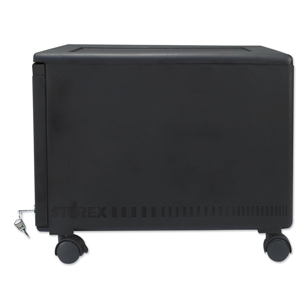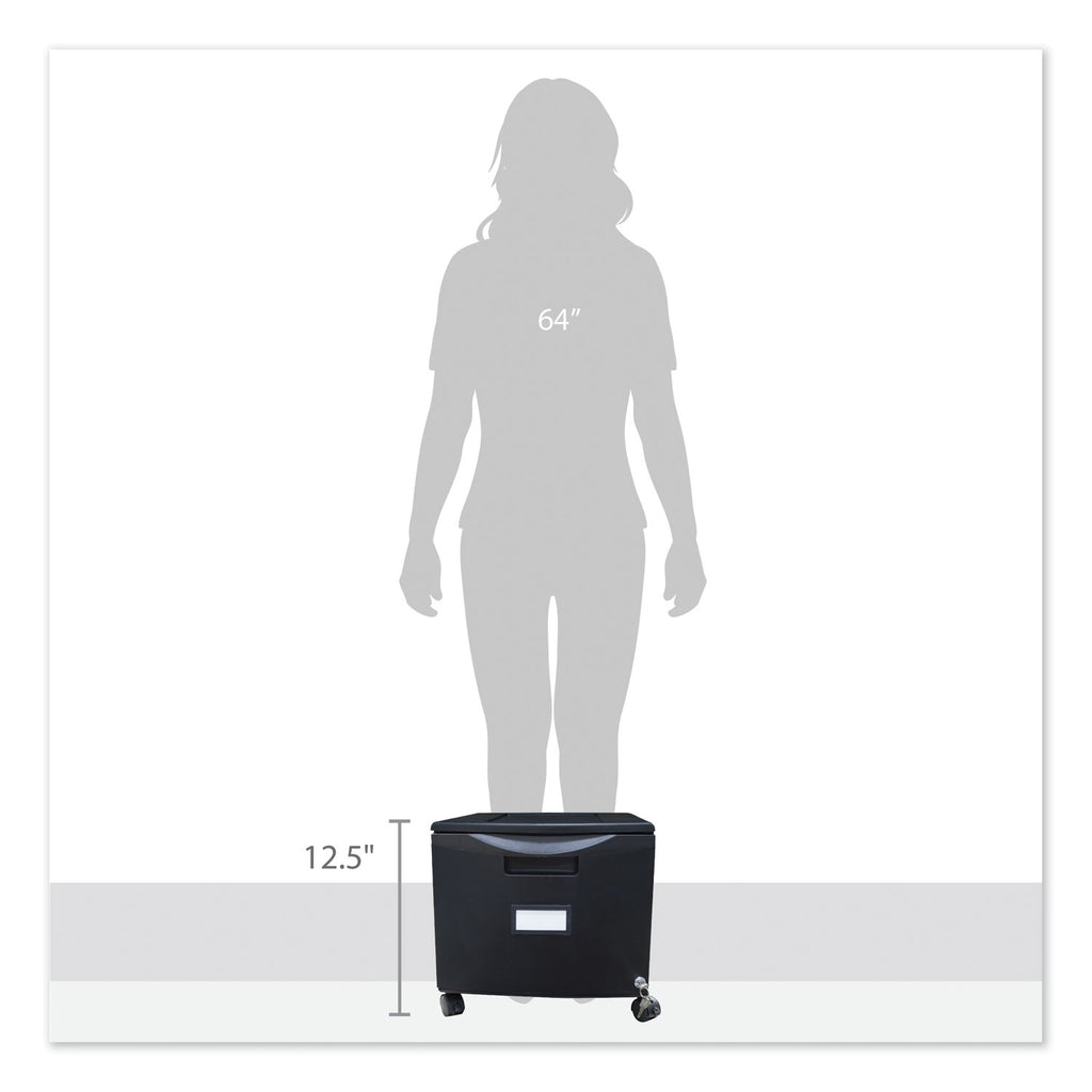 Mobile cabinet makes filing easy and efficient. Removable casters allow cabinet to be stacked on top of two-drawer mobile filing cabinet for added storage capacity. Heavy-duty plastic construction with built-in rails for letter/legal hanging files.