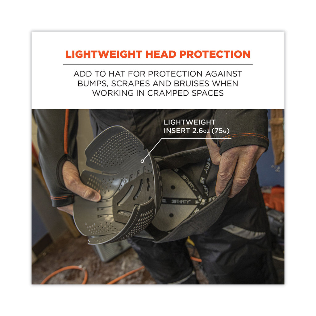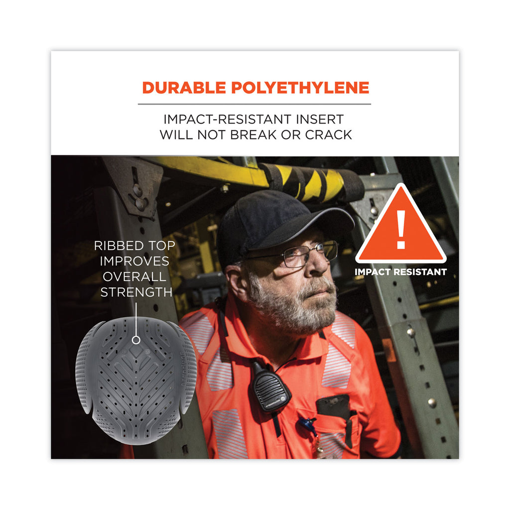 The next generation of best-selling Skullerz 8945 Insert, the 8945F(x) Insert with extra venting delivers enhanced breathability and up to 35% more crown impact protection. This lightweight and breathable impact-resistant shell easily inserts into any baseball cap, hat or other headwear for protection against bumps, scrapes, bruises and other minor head injuries. With flexible sides and convenient trim-to-fit customization, this bump cap insert easily fits a variety of hats/caps and head shapes. The shell is made of lightweight, durable polyethylene with a ribbed top for stronger crown impact protection. All-over venting maximizes airflow for cool comfort, while an interior foam pad reduces impact without absorbing odors for fresh all-day wear.