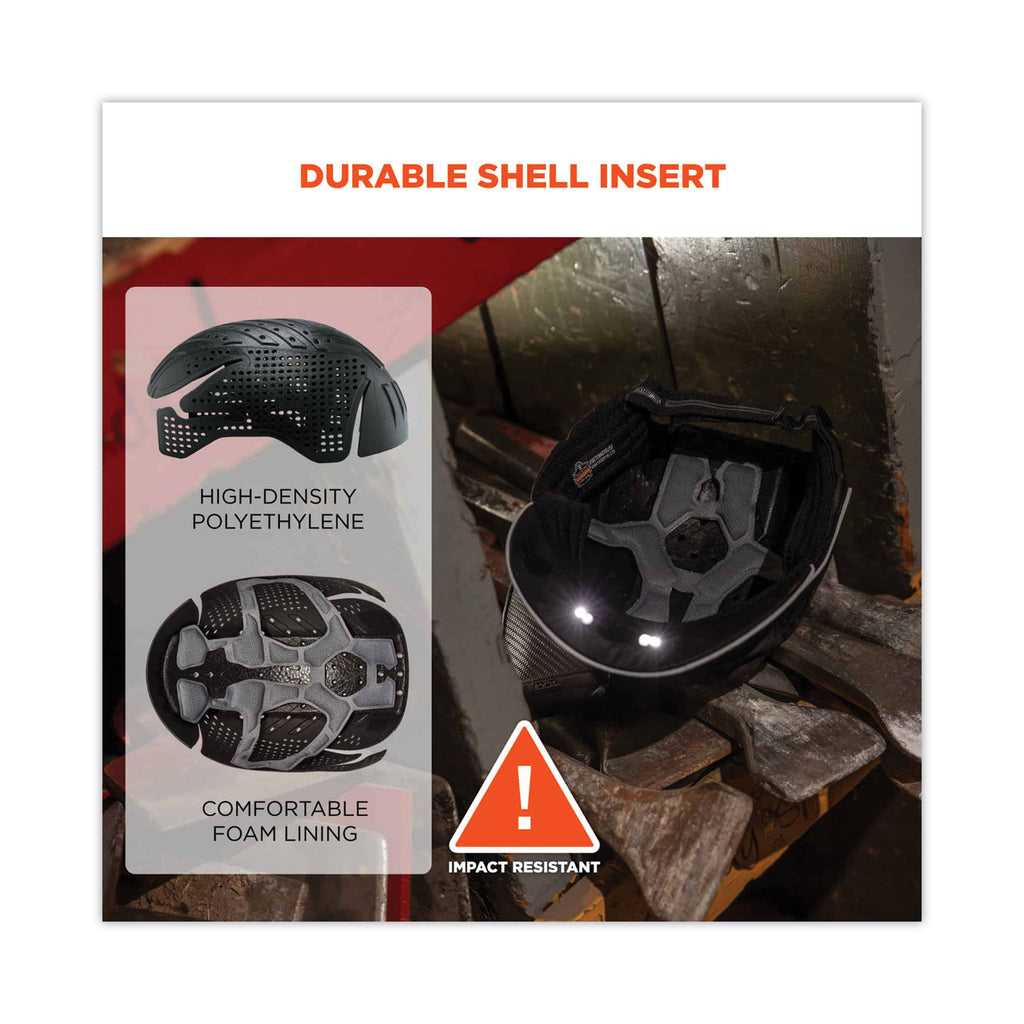 This comfortable and stylish hat features micro-LED lights and a ventilated impact-resistant shell for breathable protection against bumps, scrapes, bruises and other minor head injuries. At less than 5 oz, this incredibly lightweight bump cap delivers optimal comfort without compromising safety. Built-in dual-action LED lights under the brim emit 44 lumens for ultra-bright, hands-free visibility in the dark without flashlights or bulky headlamps. The LED task lights allow for close-up or distance lighting for visibility where you need it most. Run time is up to 11 hours with use of four CR2032 lithium-ion batteries (included). This bump cap tackles two big challenges workers face in the field: weight and heat. The removable bump cap insert is made of a lightweight but durable high-density polyethylene (HDPE). Lining the insert is a removable, washable and anti-microbial EPP foam pad.