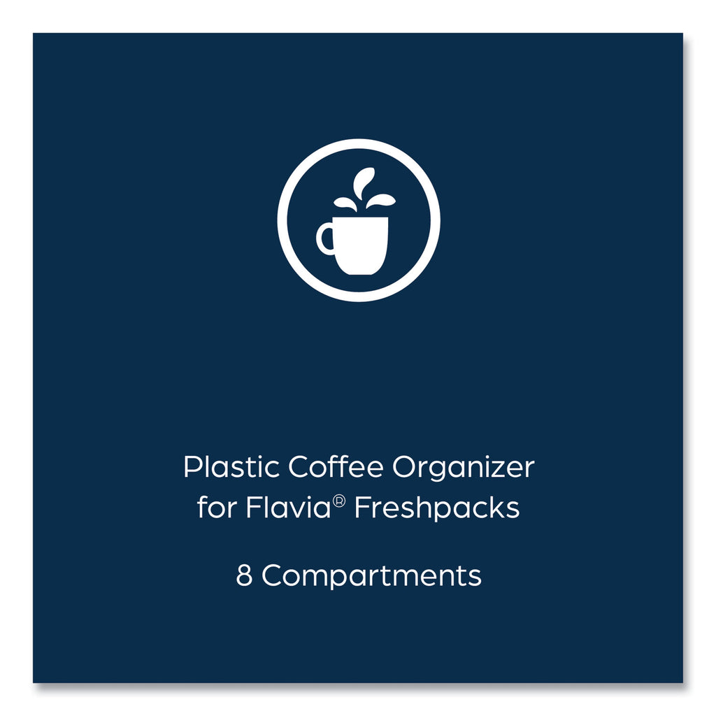 Stylish, sturdy and space-saving, this organizer holds 80 great-tasting, Lavazza Freshpack drinks. Your team can easily find their favorites, brew a fresh cup and stay energized throughout the workday with this compact office coffee merchandiser. Simple, one-piece design is recyclable, requires no assembly and offers an efficient way to keep workplace drinks areas organized and inviting. Plastic merchandiser can be used inside a 14" deep x 10" high cabinet drawer.
