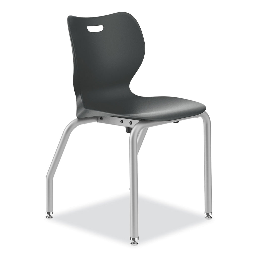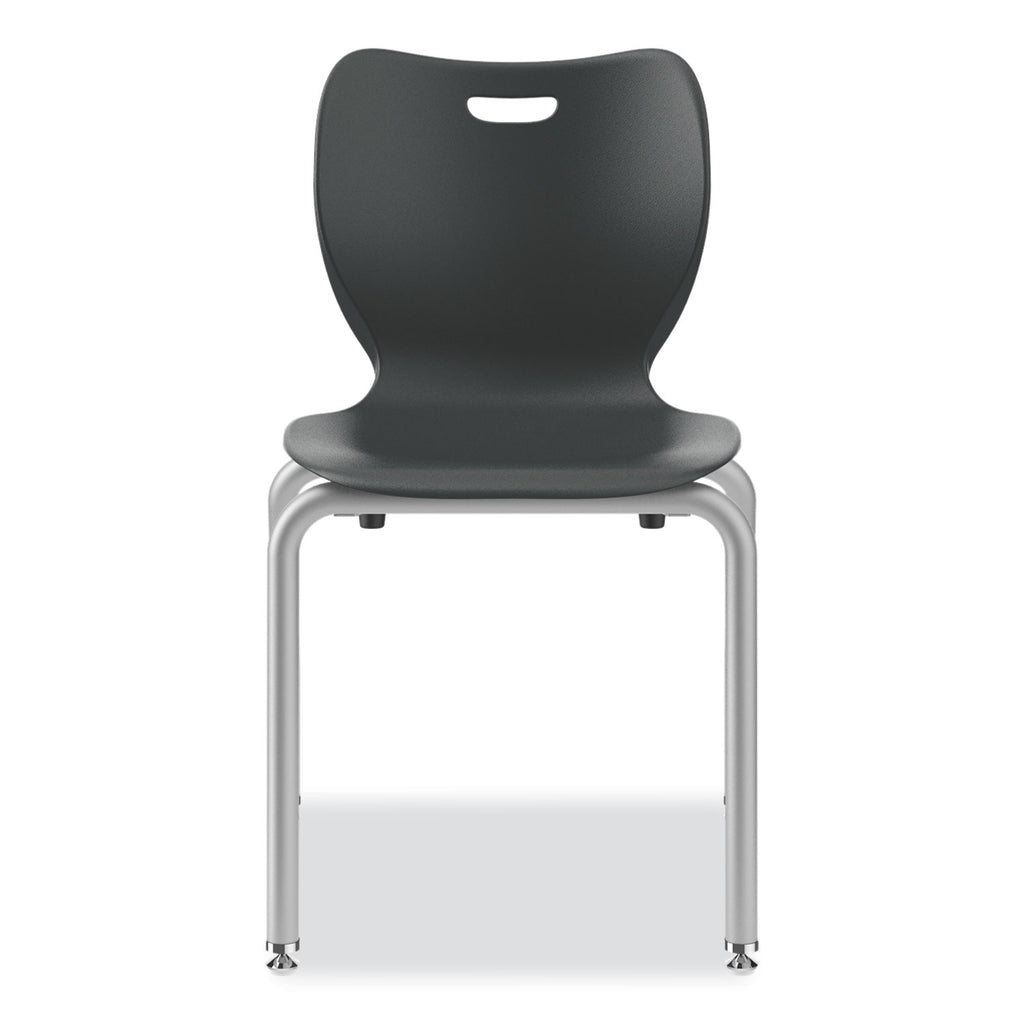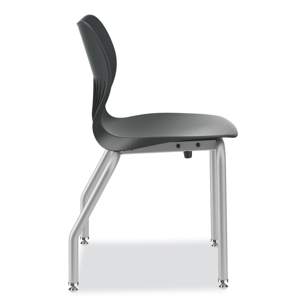 Chairs feature responsive contoured geometry to support the way people move, allowing them to turn around, sit sideways, lean back, and stay comfortable and focused for longer periods of time. This four-leg armless chair supports learning by allowing for a variety of postures.