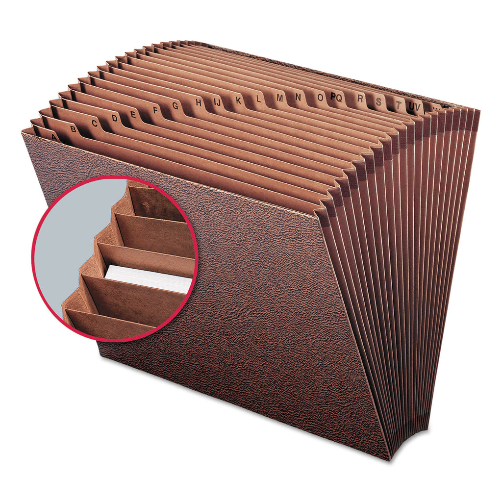 The quality standard for portable expanding files, these heavy-duty tough files feature a handsome and sturdy redrope-printed material. Protective flap with elastic cord closure makes it easy to transport the entire file. Choose from alphabetic (A-Z), monthly (January-December) or daily (1-31) indexing. This heavy-duty file features extra reinforcements and double thick front and back panels for long-lasting durability. Each pocket expands to 0.88".