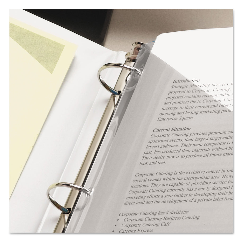 Easily organize papers into three-ring binders without punching them. Diagonal slash pockets on both sides keep documents safe and sound, and make it easy to pull them out when needed. Durable poly material is tear and water resistant and easy to clean. Letter size (9.25" W x 11.25" H) poly slash file jackets. Acid free and PVC free.