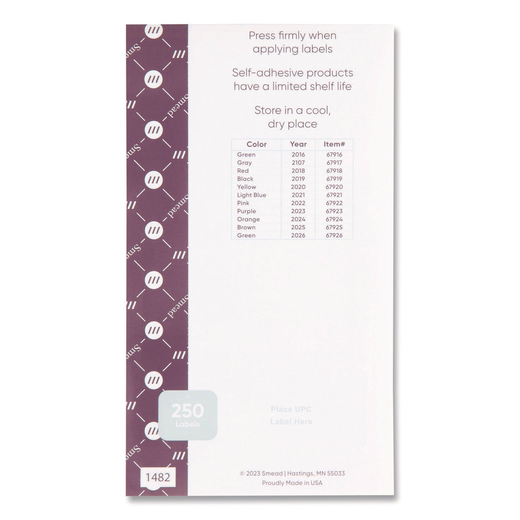 Indicate when a file was created or signal when a file should be destroyed or moved to inactive storage by coding end tab folders with these labels. Color coded labels makes it easy to locate all folders with the same date. Protected by clear laminate. Scored, wraparound color bar allows clear visibility from both sides of your folder. Works with most end-tab file folders (sold separately). Adhesive sticks securely.