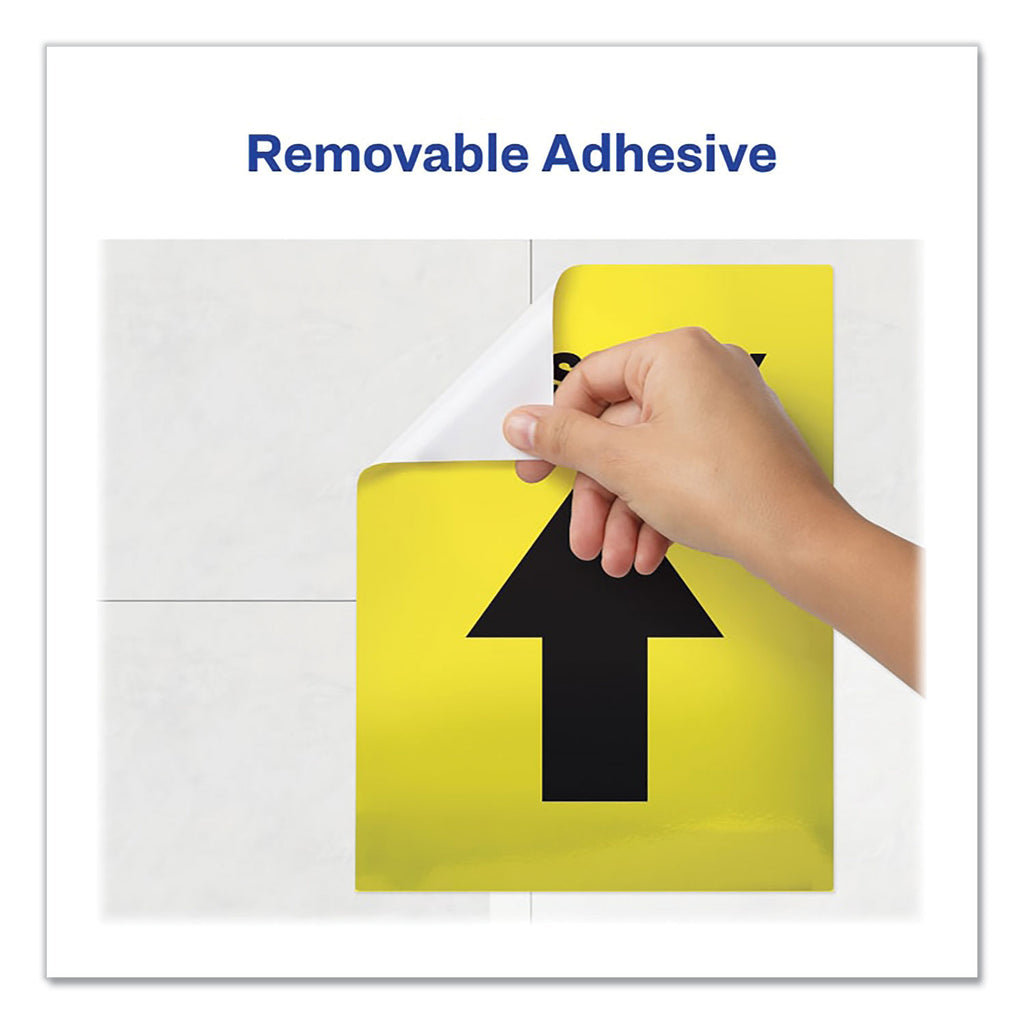 Help your customers keep a safe distance. Featuring a preprinted message on a vinyl surface with a semigloss finish, it is an intuitive and easy way to direct foot traffic. Designed to withstand everyday wear and tear, this anti-slip and water-resistant floor decal is also scuff-resistant and UV-coated for additional durability. Able to stick and stay but also peels away cleanly, it is removable and easy to reposition for the right spacing and placement. Perfect for retail stores, restaurants, hair salons, banks, airports, and more.