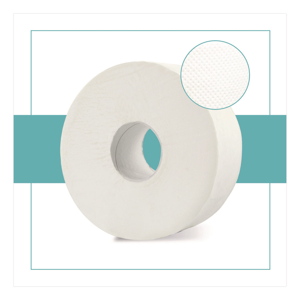 Double layer jumbo roll bathroom tissue offers the softness of a two-ply product with the affordability of a one-ply product and a long-lasting roll. This space-saving and cost-saving option is ideal for high-traffic commercial restrooms. Say goodbye to frequent roll changes with septic-safe Jumbo Rolls from Papernet. This economical solution offers feet after feet of toilet tissue to reduce restroom maintenance costs.