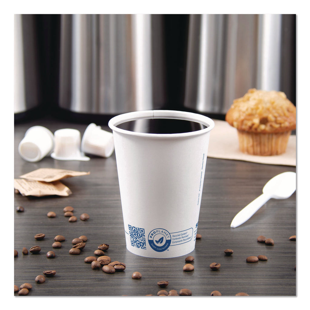 Serve hot drinks the sustainable and secure way. These cups are designed with a moisture barrier that helps prevent leaks. Enjoy or serve coffee, cappuccino, tea or hot chocolate with confidence. Whether you're in the foodservice industry, managing an office or planning an event, SOLO® Recycled Content Paper Hot Cups offer a reliable option you can be proud of. Provide an interactive customer experience and display your sustainability commitment with a scannable QR code printed on the cup. Compatible snap-tight lids are sold separately.