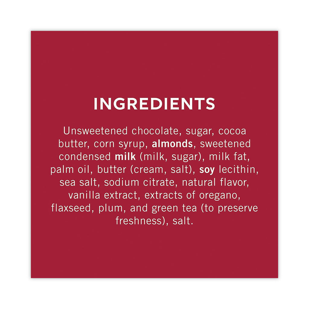 | Flavor | Dark Chocolate 60% Cacao; Dark Chocolate 72% Cacao; Dark Chocolate Sea Salt and Almonds; Dark Chocolate Sea Salt Caramel |